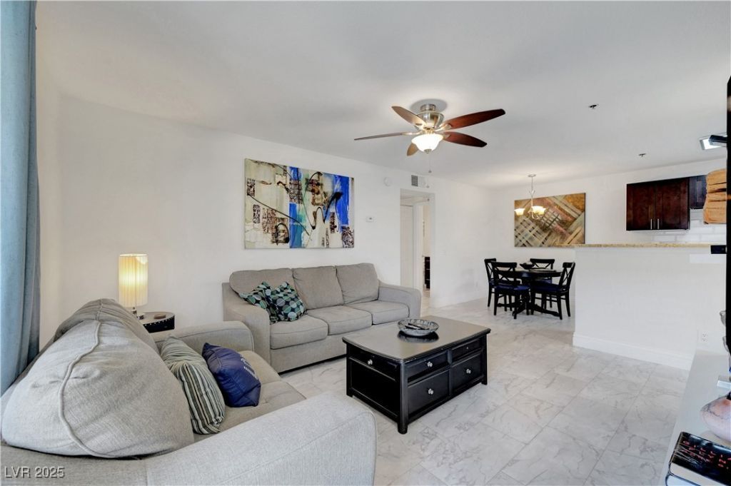 Fully remodeled second-floor condo in the heart of Las Vegas! This turnkey 2-bedroom, 2-bathroom unit is fully furnished, just minutes from the iconic Las Vegas Strip, Allegiant Stadium, and T-Mobile Arena. Step into a spacious living area adorned with chic furnishings, a modern kitchen boasting granite countertops, and a cozy dining nook perfect for entertaining. The bedrooms offer generous closet space and tasteful décor, ideal for relaxation or investment. Enjoy resort-style living with access to a sparkling pool, soothing spa, state-of-the-art fitness center, and gated security for peace of mind. Perfect for frequent visitors, investors, or full-time residents, this prime location ensures easy access to world-class shopping, dining, and entertainment. The HOA has approved short-term rentals, making this an excellent opportunity for income potential. Move-in ready with all essentials included?just pack your suitcase and embrace the Las Vegas lifestyle in this exquisite condo!