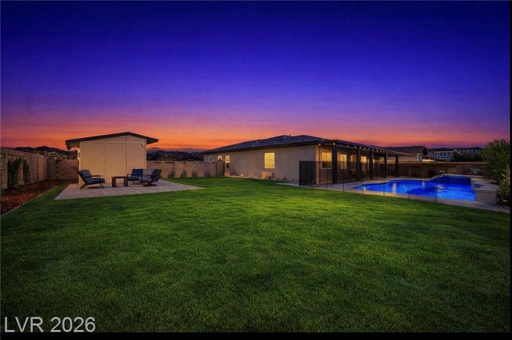 Looking for a like new custom single story 4 bed home in Henderson with land, RV parking, and no HOA? Located in Henderson, this custom single story home sits on an almost half acre lot and offers the space and freedom buyers need when they are moving with toys, RVs, and big plans. If you want a move in ready Henderson property with no HOA and room to spread out, this home delivers. The open floor plan features 4 bedrooms, great natural light, white cabinetry, two tone quartz counters, wood look tile flooring, and new carpet for easy, turn key living. Outside, the lifestyle is built for space and function with a sparkling pool and spa, large grass area, covered patio, and room to expand. An oversized 3 car garage, gated 80 by 24 RV parking, and a workshop give you the flexibility to store, tinker, and travel. At night, the backyard comes alive with the glimmer of city and Strip lights against the mountain views, creating a setting that feels open, private and hard to find in Henderson.