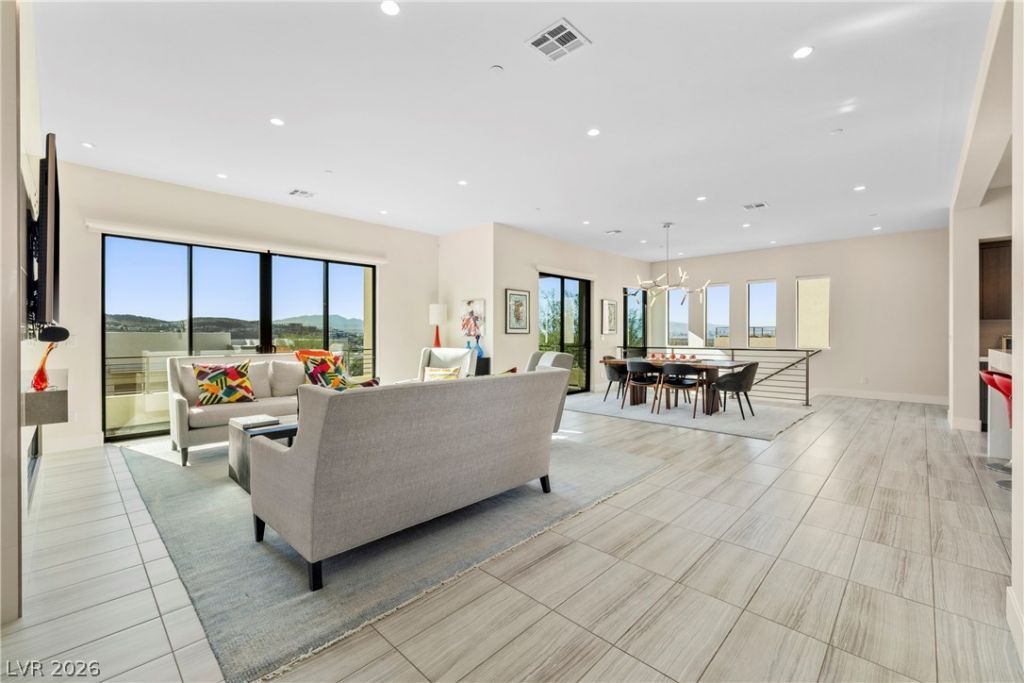 Absolutely stunning modern luxury home in prestigious MacDonald Highlands with panoramic views of DragonRidge Golf Course, the Strip & surrounding mountains. Features 3 bedrooms, 4 baths, loft, office area & coffee bar. The massive primary suite offers a private balcony, spa-like bath with shower, standalone tub & custom walk-in closet. Sleek modern design with soaring ceilings, walls of glass, motorized shades, tile & luxury vinyl plank floors. Gourmet kitchen with quartz counters, stainless appliances, walk-in pantry & custom cabinetry. Each bedroom has its own bath. 3 balconies total, linear fireplace, private backyard, water softener & RO system included. Perfect for a lock-and-leave luxury retreat or year-round living!