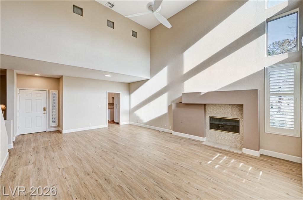 PRICE REDUCED BY 20K & SELLER OFFERING $10,000 TOWARDS BUYER'S CLOSING COSTS. UPGRADED 3 BEDROOMS - 3 BATHROOMS + 1 DEN HOME IN THE ISLANDS AT SPANISH TRAIL. Features vaulted ceilings in grand main entry with lots of natural light & AUTO sunshield rolling blinds in family room. Gorgeous chef's kitchen + granite tops, stainless steel appliances, custom cabinets, newer appliances & plantation shutters throughout. HUGE primary suite downstairs with custom shower. Office/den downstairs & secondary bedrooms upstairs. Lots of storage + water softener. Located 10?12 minutes from the Las Vegas Strip, easy access to I-215 & Summerlin, quick airport access & close to Downtown Summerlin & Chinatown dining. AMENITIES: 24/7 Guard-Gated Luxury & Security, golf & country club, private gym, tennis & pickleball courts, 2 heated pools, 2 spas, walking paths, lawn & plant maintenance, tree trimming, irrigation repair, exterior stucco repairs, exterior repainting cycles, roof tile maintenance, & more.