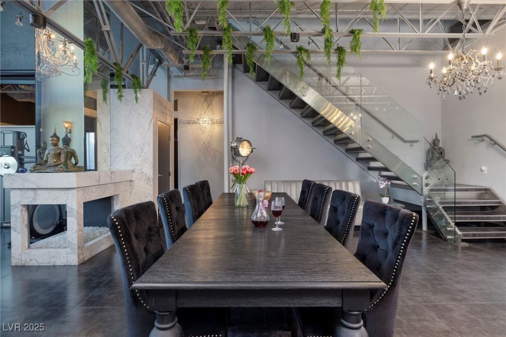 The Broadway Loft w/Strip, City & Mountain Views. Sensational 24'Foot ceilings w/views from floor-to-ceiling windows. One of the largest lofts & lot in Grand Canyon Villas, a Private Summerlin 26-home community w/No HOA! Room to park 10+Cars & RV parking in the extended driveway. 3364 SF, 3 Bed, 2 Bath, 2-10 Car & RV+,.23 Acres| Striking Viking Chef's Dream Kitchen,Granite Counters & Backsplash. Open Liv & Din w/Marble 3-Way FP. Media Rm w/Automatic Wall. Dramatic stairs to massive loft suite w/Spa Bath:Sep Tub,Marble Shower,Dual Vanities & Walk-in Closet. Office Retreat w/Priv Strip View Balcony. Glass railings allow for max views & complete the modern loft aesthetic. Private Outdoor yard w/Chic Built-in Fire lounge. Security System w/Surveillance Cameras, Auto Shades. Remodeled & upgraded=Urban sophistication meets timeless design-perfect for modern city lifestyle. Mins to Dining,Shops. NO HOA. NV is a State WITHOUT Indiv,Corp,Estate, Inheritance Taxes offering savings for Residents.