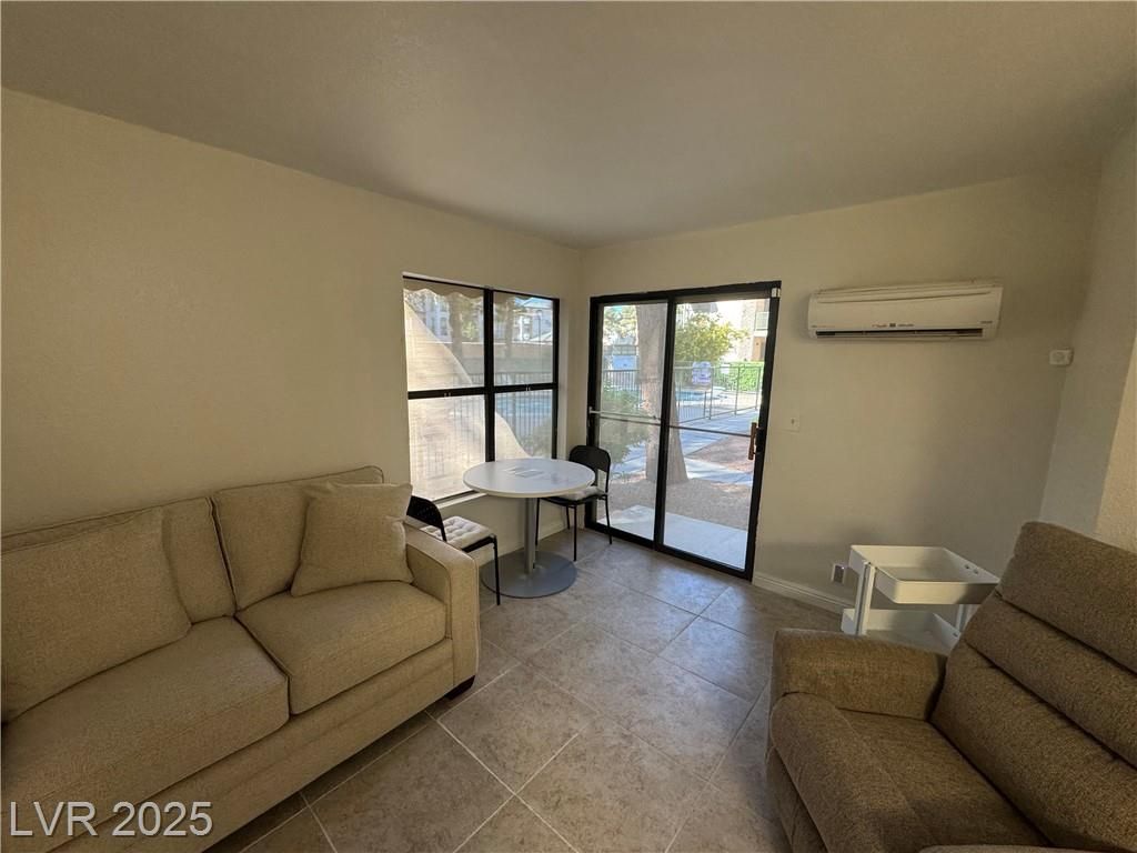 Welcome home to this gated one-bedroom condo that perfectly combines comfort, convenience, and value. Located just minutes from the Convention Center and the Strip, this property offers resort-style living in the heart of Las Vegas. Inside to find a stylishly updated kitchen featuring mission-style cabinets, quartz countertops, and a breakfast bar extra storage. The kitchen comes fully equipped with modern appliances?including a refrigerator, dishwasher and microwave. The open layout features tile flooring throughout, upgraded blinds and light fixtures and solar screens for added comfort. Energy efficiency is maximized with a Fujitsu mini-split HVAC system with remote controls, complemented by a remote-controlled central HVAC system. Enjoy morning coffee or evening relaxation on your private back porch, or step right outside your front or back door to take a dip in the sparkling community pool. The condo also comes with a covered parking space