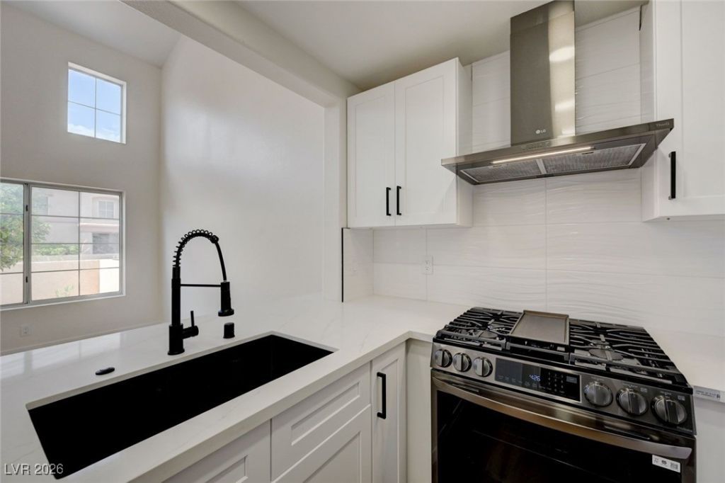 Beautiful completely remodeled gated townhome in the well sought after Belle Esprit community is ideally located within walking distance of the South Point Casino & Resort, with the added benefit of being just minutes away from the iconic Las Vegas Strip, Harry Reid International Airport, and all major sports venues. This home features 1 bedroom and bathroom downstairs, 1 bedroom and bathroom upstairs, loft, new quartz countertops throughout, new custom cabinets throughout, new LG black stainless steel appliances, microwave, refrigerator, kitchen backsplash, new washer and dryer, custom tile shower and bath, private garage, new interior paint, laminate flooring with high baseboards, patio, new plumbing and lighting fixtures, newer HVAC, 2 community pools/spa, BBQ area, vaulted ceilings and low HOA dues! This home has it all!