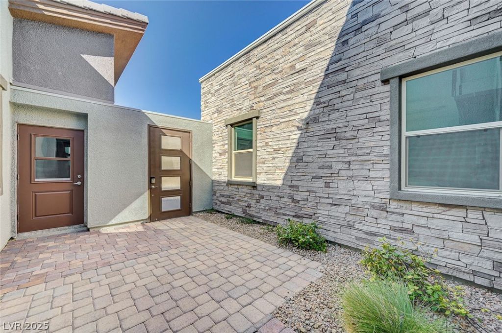 Located in the gated Ironwood community by Toll Brothers, this South Summerlin home blends privacy, luxury, and modern design. Welcomes you into an open floor plan with 12' ceilings and an impressive 18' ceiling in the living room. The chef's kitchen features an oversized island, extended-height custom cabinetry, and a stylish wet bar. The primary suite offers a spacious layout and an oversized walk-in shower. Enjoy a large covered patio, no rear neighbor, and a built-in outdoor dining space. Water filtration and softener systems in the garage, plus two BBQ fixtures, a hot water fountain, are included. Close to community walking trails and parks. Perfect for refined indoor-outdoor living.