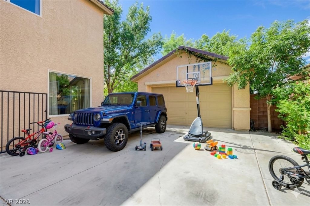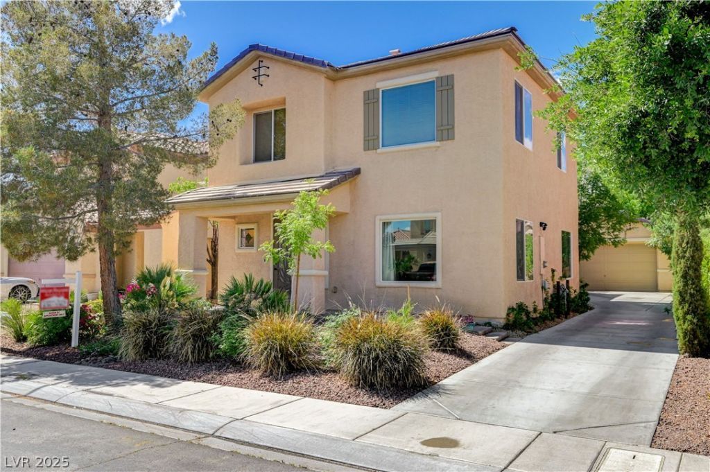 Experience the Best of Aliante Living! Stunning home in the heart of the Aliante Master Planned Community?North Las Vegas's premier neighborhood known for scenic parks, top amenities, and an unbeatable location. Enjoy easy access to freeways, Nellis AFB, Costco, shopping, and dining! Sought-after floor plan with rear detached garage, boosting curb appeal and creating a long driveway?great for entertaining, extra parking, and includes an EV charging hookup. The beautifully landscaped, park-like backyard offers a serene retreat w/firepit and zen-inspired ambiance. Spacious living and family rooms, formal dining, bright breakfast nook, and great natural light. The island kitchen has a breakfast bar, stainless steel fridge, and ample cabinetry. Cozy fireplace in the family room. Upstairs, the primary suite features a walk-in closet, dual vanities, soaking tub, and separate shower. All bedrooms have ceiling fans. Large laundry room adds convenience. This home truly has it all-don't miss it!