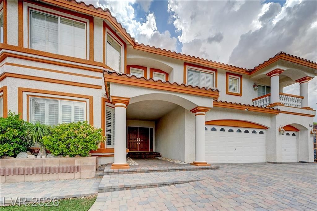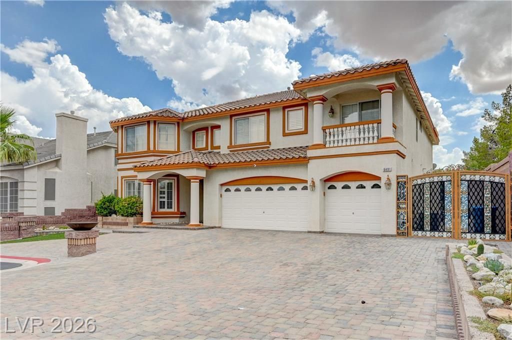 Gorgeous home in a Cul-de-Sac with an oversized lot, a heated swimming pool, 5 bedrooms and 3 full bathrooms, a formal dining room, a huge kitchen and a finished basement with a storage. The Master Suite has a 2 way- Fireplace, a good size Walk In Closet, dual sink, separate walk in Shower and a Jetted Tub. The finished basement can be a Music Room or a Mini Gym and has a room-size storage attached. The front driveway is huge enough to accommodate an RV, a Limo or 5 Cars over and above the 3-car garage. It is located on Pinnacle 3 which is a Gated Community in Southwest Area of Las Vegas minutes to the Airport, Strip, Hospitals, Groceries, Banks, Schools , CostCo and Sams and other major establishments. A perfect place for Investors or someone who is not ready yet to relocate as Tenants are willing to stay for another year.