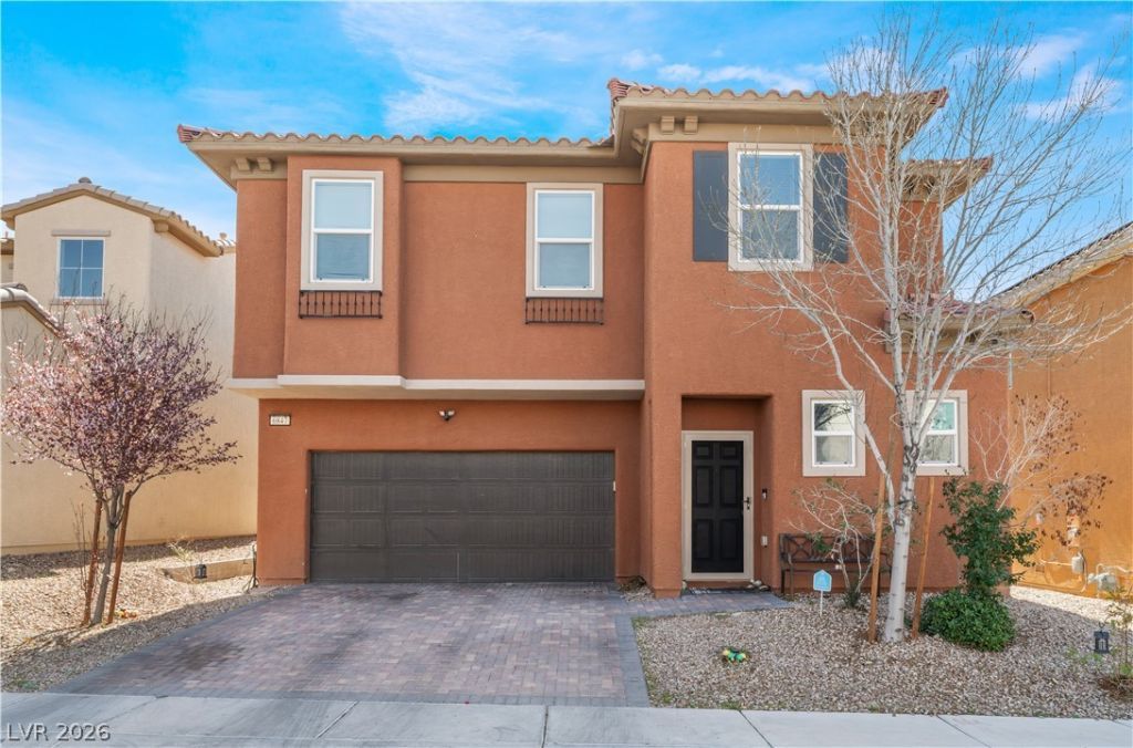 Beautiful two-story home in east Las Vegas featuring an open and functional floorplan with modern wood-look flooring and neutral paint throughout. The upgraded kitchen offers granite countertops, dark cabinetry, stainless steel appliances, tile backsplash, recessed lighting, and a breakfast bar that opens to the dining area. Enjoy a low-maintenance backyard with paver patio and desert landscaping, perfect for relaxing or entertaining. Conveniently located near shopping, dining, parks, and freeway access. Move-in ready!