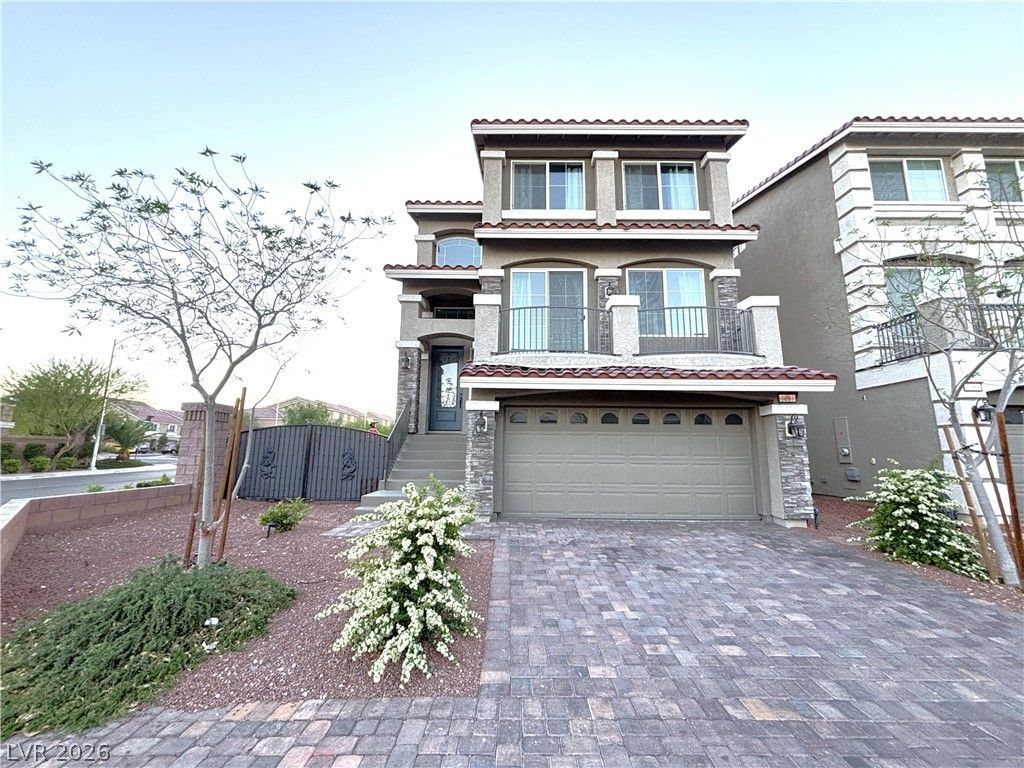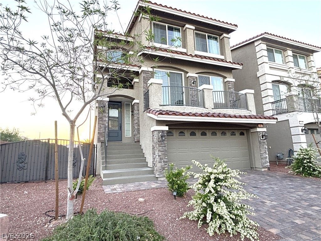 Southwest, I-215/Rainbow, easy to access freeway, near shopping center and all restaurants, super convenience location. 3 story. There is a master suit with living room space in the first floor, total two master suites. Balcony in the 2nd floor, formal living room and dinning room.