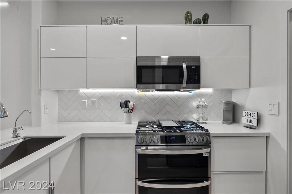 Fully Furnished SHORT OR LONG TERM, UTILITIES INCLUDED. Welcome to Vistana~ An Ultra Modern 1 Bd Condo with attached 1 Car Garage. Steps away from The Posh Durango Resort & Uncommons Shopping Center. Unparalleled Style meets Functionality. A Smart Condo with stunning built in LED Mood Lighting throughout, Motorized Window Shades, Spacious Layout, High End Appliances, Gorgeous & highly functional European Cabinetry all sure to please your stay. Enjoy a unique layout with access to the oversized balcony from the Primary Suite or Living room offering tranquil views of the Luxury Fitness Center, Pool, Hot Tub, BBQ Grills, and Clubhouse. End your day in the luxurious Spa Bath in the Primary Suite complete with Flat Screen TV, King Size Bed & Celebrity Built in Closet! This Condo unit is also located near the main Guard Gate & Pedestrian Gate leading to Resorts & Shopping Centers, 2 minutes from 215 freeway giving you access to Henderson, Summerlin, The Strip & Airport within a 15 min drive.