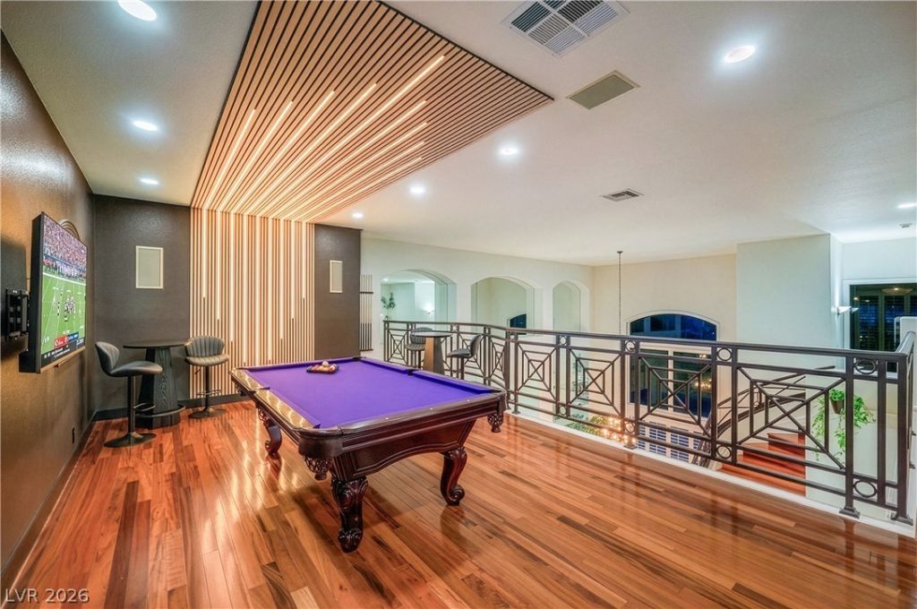 Newly renovated and fully furnished 5,047 sq ft luxury residence ideally positioned on the edge of Summerlin, offering 4 bedrooms and 5 bathrooms designed with scale, privacy, and refined living in mind. Each bedroom is a private king suite with its own balcony and en-suite bath, delivering a consistent, elevated experience throughout. The interior showcases soaring ceilings, statement lighting, and expansive open living spaces, including a game room with pool table. The primary suite is generously sized with a spa-style bathroom. The backyard presents a resort-caliber setting with a private pool, putting green, dog run, built-in grill, and Italian-style pizza oven, seamlessly blending indoor and outdoor living. Convenient to the 215, approx. 15 minutes to the Strip, 20 minutes to the airport, and minutes from P1 Padel, golf, dining, and shopping. **POOL AND LANDSCAPING FEES INCLUDED***