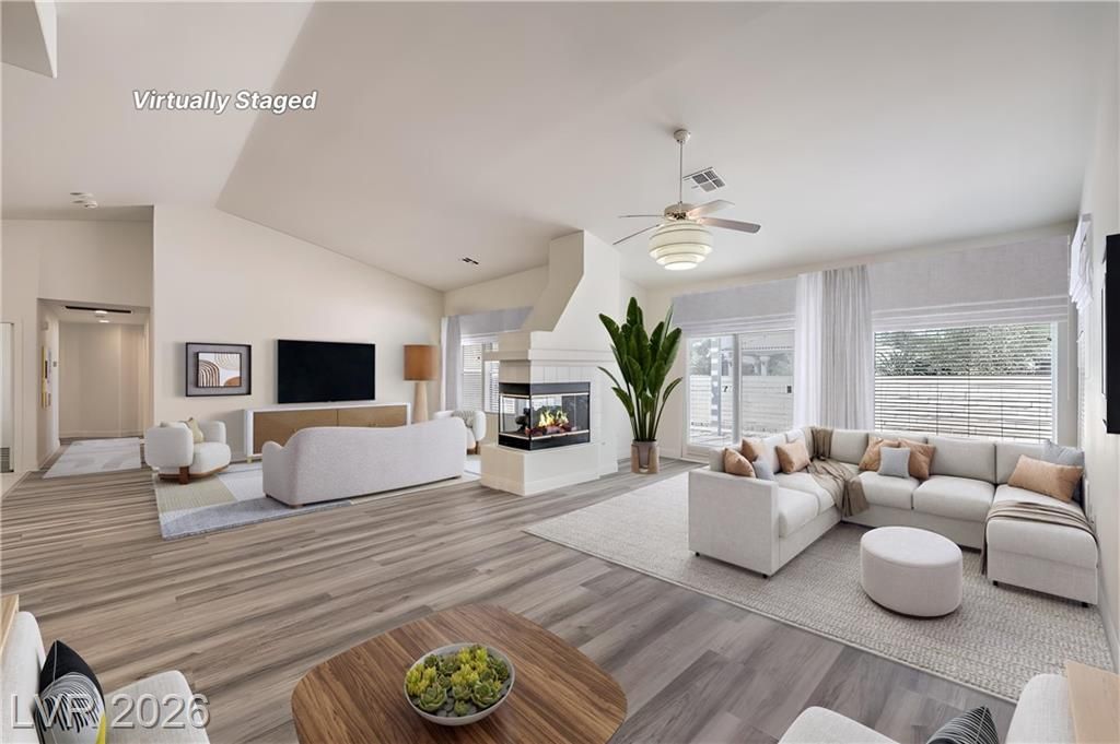 Contemporary home sitting on a premium cul-de-sac home site in the desirable gated community of Tuscan Trails. Over a third of an acre lot offers flexibility suiting many needs including covered patio, stamped concrete, relaxing spa, and no rear neighbor for an added sense of privacy. Open concept living at its finest, you will love the vaulted ceilings and perfectly placed windows allowing natural light to pour in. Primary suite promotes a restful feeling enhanced by the remodeled bathroom with modern flair of quartz surfaces, freestanding tub, and a seamless glass shower. Kitchen features granite counters, prep island, breakfast bar, walk-in pantry, and a convenient desk. Comfortable family room highlighted by a French patio door, three-way fireplace, ceiling fan, and plenty of space. Beautiful home upgraded with new paint, new luxury plank flooring, stone pattern tile, new blinds, LED recessed lighting, and sleek baseboards.