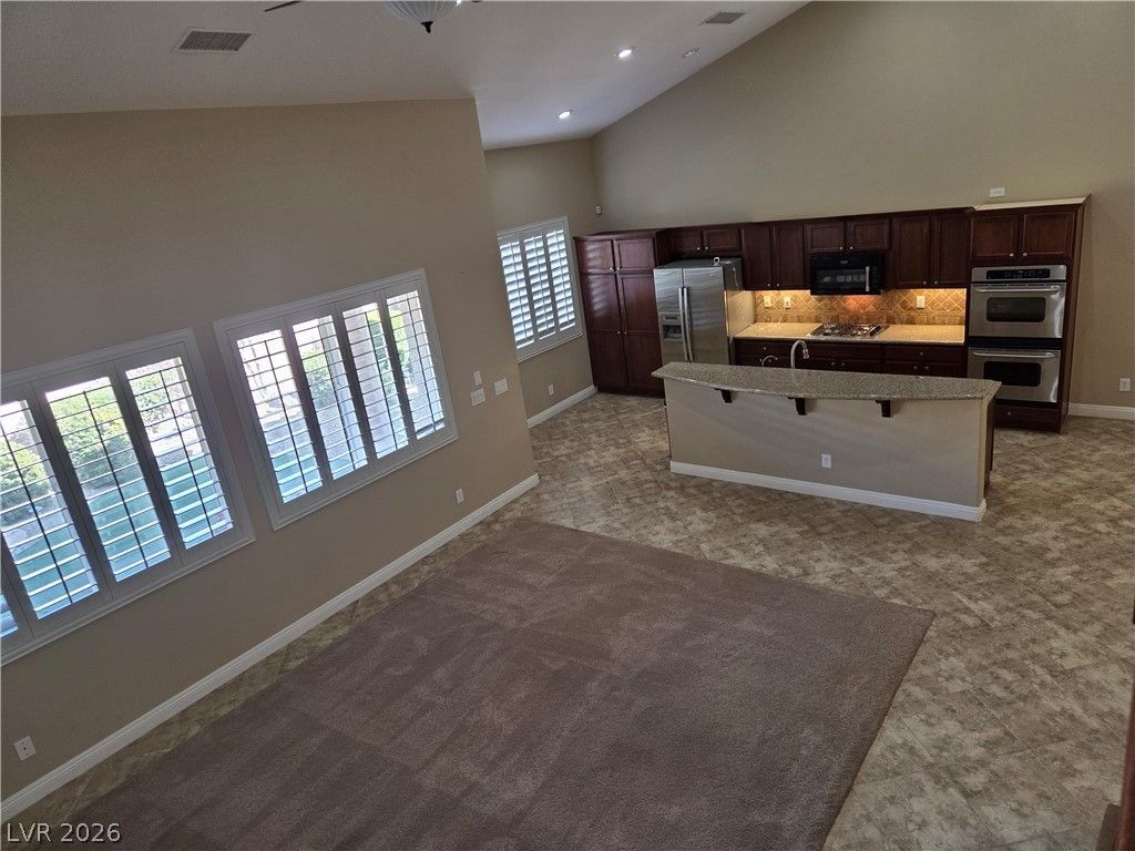 Absolutely stunning! Former model home that is immaculate, beautifully designed, and is situated in a gated community in Centennial Hills. This spacious home is nearly 3000 square feet with a 3 car garage, and has beautiful cabinetry, upgraded carpet and tile, soaring ceilings, an open floor plan, 3 large bedrooms, a large den and loft. Also there is a jetted tub in the primary bathroom and a beautiful closet with custom wood built ins. If one desires, the den and loft could be converted to bedrooms. The backyard has well manicured landscaping, trees, shrubs and a covered patio. For those who are looking for a home that is absolutely gorgeous, like new, and ready for move in, this is it! This home can save many thousands or tens of thousands of dollars from renovations with flooring, cabinetry and painting, and countless hours of effort. This one is a 10!