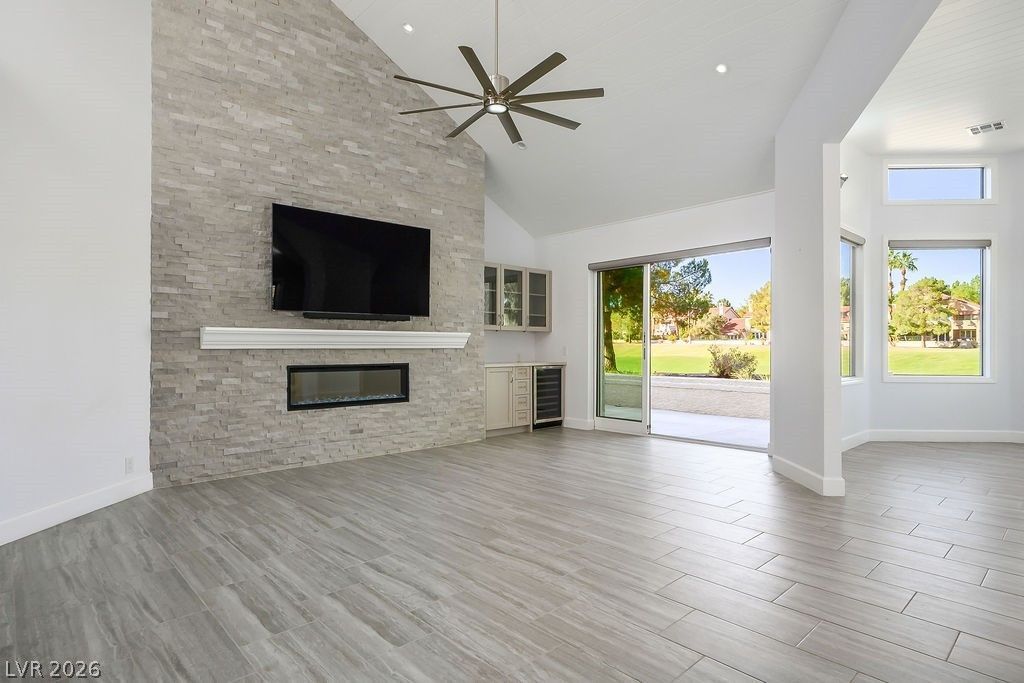 Discover this exquisite home featuring breathtaking renovations & panoramic golf course views in Spanish Trail. Impeccably upgraded, this residence boasts beauty throughout, luxurious countertops w/ a spacious kitchen island, high-end stainless steel appliances. Elegant flooring & custom cabinets sophistication, while updated bathrooms showcase upgraded stylish features. The home is designed for modern comfort with custom electric blinds, custom lighting, vaulted ceilings that create an open, airy atmosphere. Every detail has been carefully attended to, including newer plumbing, a newer HVAC system, & upgraded, one-level open floor plan. Enjoy stunning vistas from the kitchen, dining room, family room, & prim bedroom, all overlooking the lush golf course. Additional features include 3-car garage, water filtration system, custom cabinets, & lighting/blinds. No stone has been left unturned?this home is absolutely stunning - move-in ready for those seeking luxury & tranquility.
