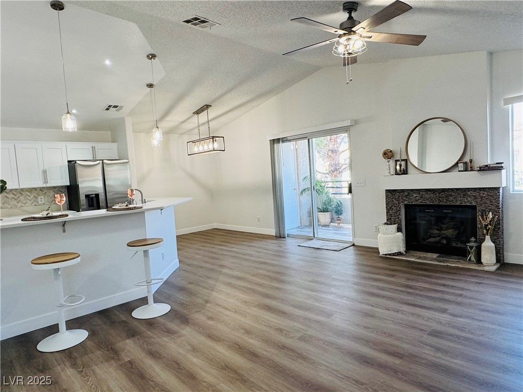PRICE REDUCED! BETTER THAN NEW! LUXURY CONDO ON THE EDGE OF SUMMERLIN Experience upscale living in this fully upgraded 2-bed, 2-bath upstairs condo in a gated community near Boca Park & Tivoli Village, with quick freeway access! Enjoy an open-concept layout with fresh paint, new blinds, designer lighting, and luxury waterproof vinyl floors. The sleek kitchen features white shaker cabinets, quartz counters, custom backsplash, and stainless-steel appliances. Relax by the custom stone fireplace or retreat to spa-style bathrooms with glass showers and a freestanding soaking tub in the primary suite. Both bedrooms offer walk-in closets, and the private tiled balcony?complete with storage?is perfect for morning coffee or sunsets. Resort-style amenities include 3 pools, spa, gym, picnic areas & clubhouse. HOA covers water, sewer & trash for maintenance-free living. Move-in-ready condo offers style and a prime location?all in one package. Don't miss out on this fantastic opportunity