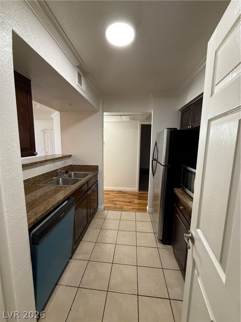 Spacious downstairs condo located in the gated Copper Sands community in the desirable Southwest. Thoughtfully designed floor plan featuring two generously sized bedrooms, each with a large walk-in closet. Laundry room conveniently located inside the unit. Tile and man-made laminate flooring throughout, with carpet in one bedroom. Open living room flows seamlessly into the dining area with sliding glass doors leading to a private, oversized balcony. Community amenities include lush, mature landscaping, an exercise room, resort-style pool, and spa. Ideally situated near Desert Breeze Park and easy access to the 215 freeway. Also available for lease. Inquire for details.