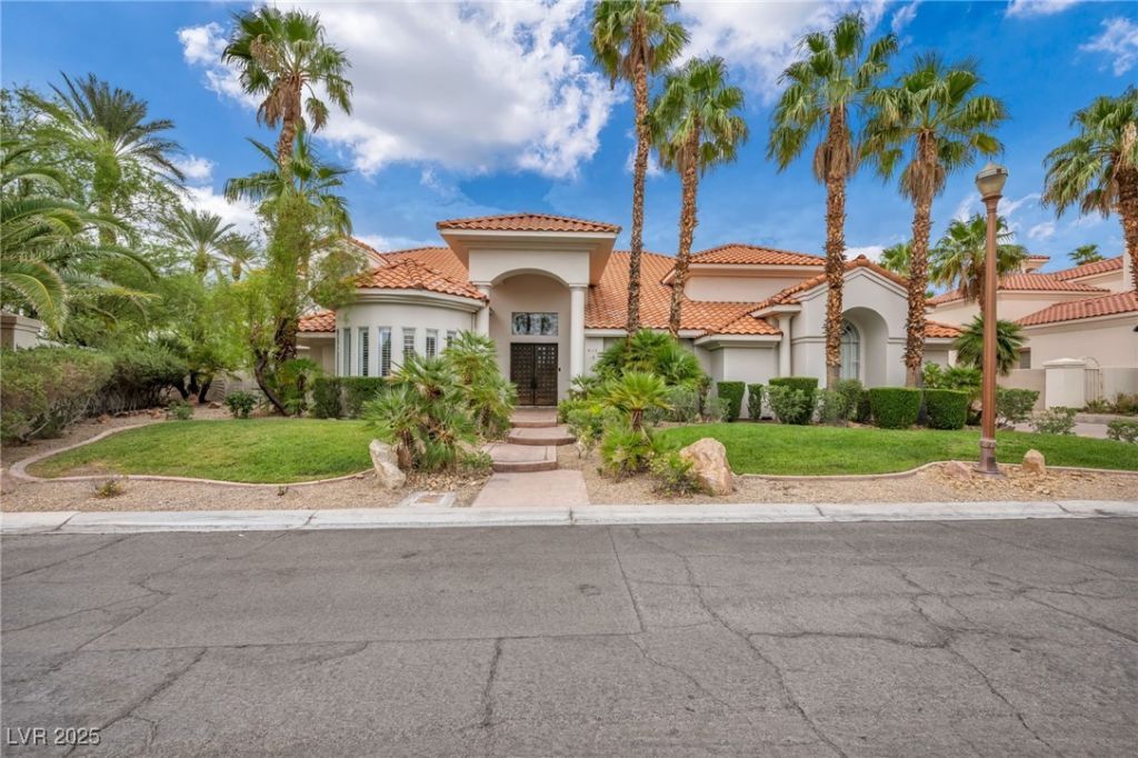 On a private corner lot in the gated Desert Shores community, this 7,562 sq. ft. estate is built for both comfort and entertaining. With 5 bedrooms and 7 baths, the home offers space for every occasion. The chef's kitchen is designed for hosting with dual sinks, ovens, refrigerators, and dishwashers, plus a huge walk-in pantry. A wine cellar that stores well over 200 bottles. elegant dining spaces, and multiple living areas make gathering easy. The primary suite feels like a retreat with a sitting room, spa-style bath, and custom closet with island. Work from the stately office, then step outside to enjoy the pool, or the community's lakes, clubhouse & amenities. More than a home, this is a lifestyle where relaxation and connection come naturally in one of Las Vegas' most sought-after enclaves. Pool is digitally staged.