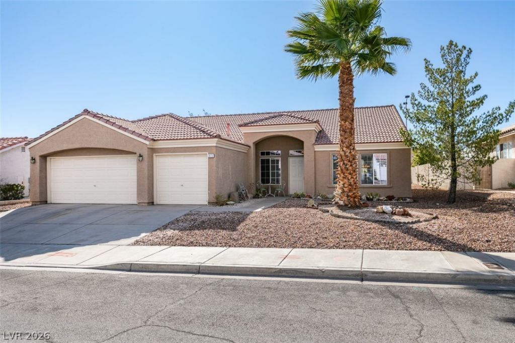 Welcome to this spacious single-story home tucked into a quiet cul-de-sac in the desirable South Shores community, situated between Summerlin and Desert Shores. With 4 bedrooms 2.5 baths and 2347 sq. ft of comfortable living space this home offers plenty of room to stretch out relax. The island kitchen is well appointed with granite counters, a built-in double oven, 5 burner, gas cooktop & pantry opening to a cozy family room with a gas fireplace. Great layout for family gatherings and every day living. This home offers a warm inviting feel with thoughtful finishes throughout including blinds, ceiling fans in the primary bedroom & family room. Tile flooring throughout except the living room. Spacious laundry room complete with utility sink and built-in cabinets. 3 car garage with cabinets & storage shelves. Additional appliances included are the refrigerator, washer, dryer, water softener & reverse osmosis. Step out back to a private yard with pebble stone patio & a covered patio.