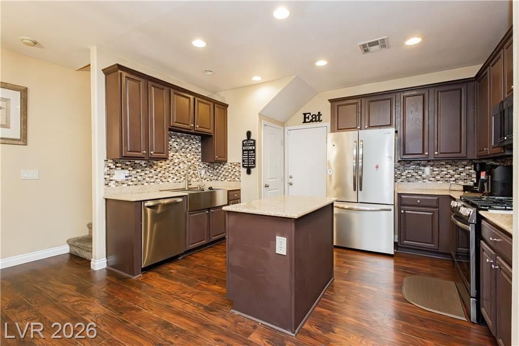 Beautiful 4-bedroom, 3-bath home located in northwest Las Vegas. Offering space, comfort, and a functional layout. Upgraded kitchen with granite countertops, island and stainless steel appliances. The open layout flows seamlessly into the main living area with gas fireplace. Upstairs, the sizeable primary suite offers a double door entrance, primary bath w/ a separate soaking tub and shower, plus two primary closets for ample storage. The additional bedrooms provide flexibility for guests, a home office, or growing households. Complete with a private backyard. Conveniently located near shopping, dining, and freeway access, this home is a true gem.
