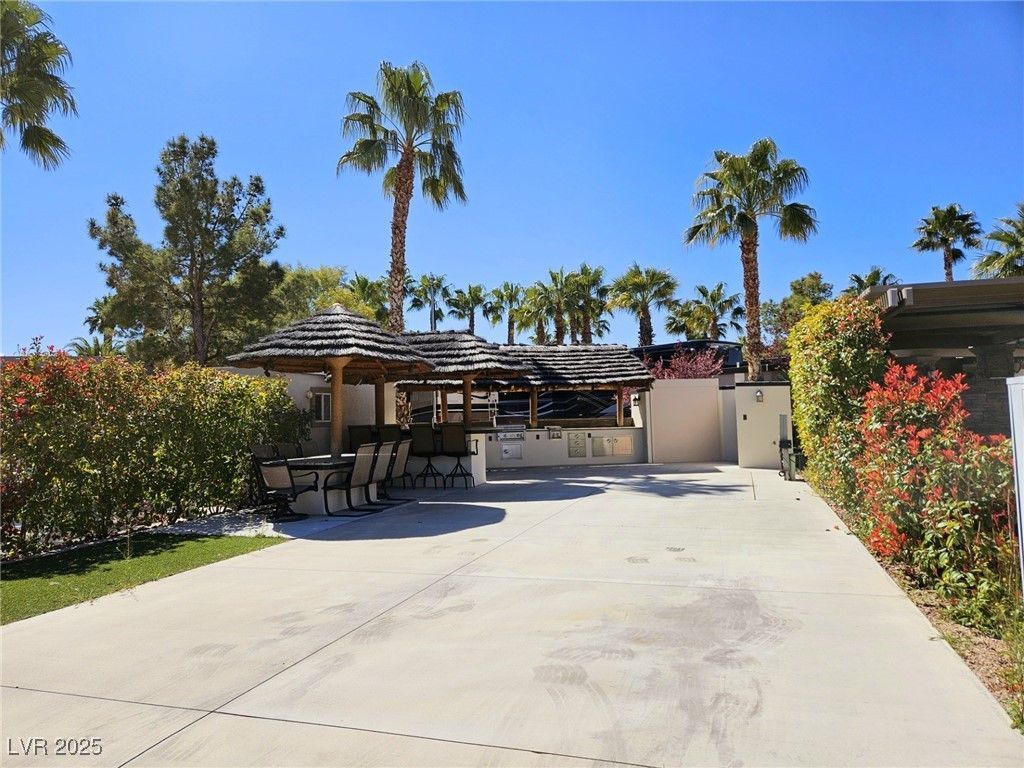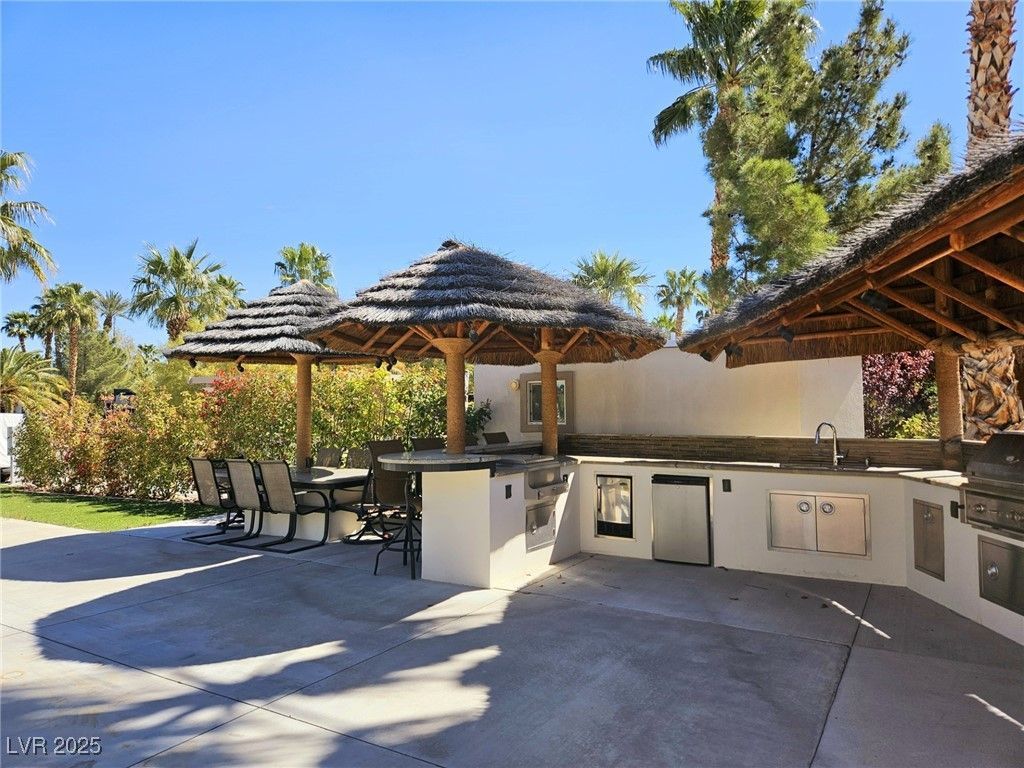 Located within the Class A Las Vegas Motorcoach Resort, this site is ready to move in and enjoy! Amazing fully built site with multiple palapas including a large rectangle palapa with a full outdoor kitchen with granite counters, bar area, dining area, and two roll up door storage areas with a washer and dryer.