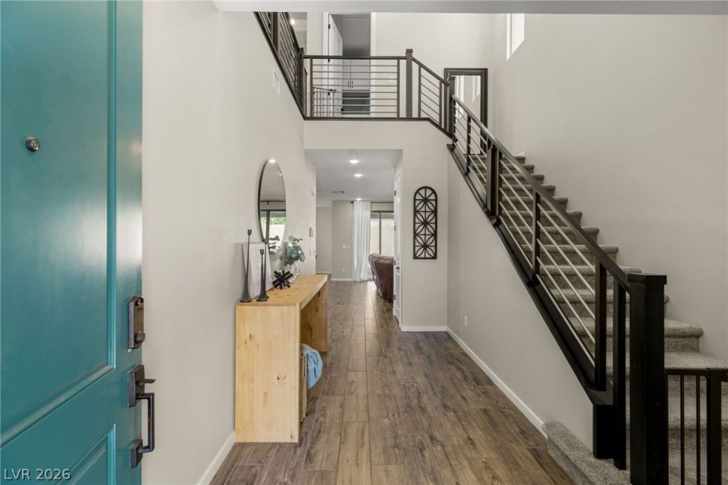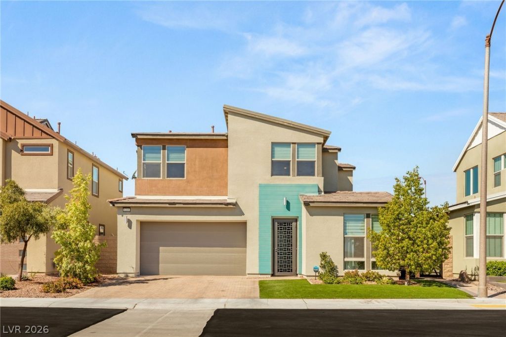 Rare opportunity to own a like-new home in the highly sought-after Skye Canyon community! You will love the open-concept floor plan with vaulted entry ceiling flooded with natural light. The thoughtfully designed layout includes a first-floor guest suite with a private bathroom and walk-in shower. You will love the spacious kitchen with slab granite countertops, stainless appliances, crisp white cabinetry and custom walk-in pantry. Upstairs, you'll find a modern staircase with sleek railing, a generous loft perfect for entertaining, games nights or media space! Generous secondary bedrooms set apart from the primary suite for added privacy. The primary retreat offers custom closet built-ins, a soaking tub and a separate shower. Enjoy ultimate privacy in the oversized backyard with no rear neighbors! Residents enjoy access to a fitness center, resort-style pool and spa, splash pad, bistro and sports park.