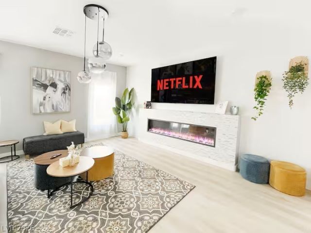 Beautiful Southwest Las Vegas Home ? Built in 2023!! This spacious 4-bedroom, 3-bathroom 3 car garage home offers a highly desirable floor plan with one bedroom and a full bathroom on the main level, perfect for guests or multi-generational living. The home features a dramatic vaulted ceiling entry and an open-concept living and kitchen area designed for both comfort and entertaining. The stunning kitchen includes: Granite countertops, Stainless steel appliances, Large island and Walk-in pantry!! Downstairs feature beautiful wood flooring throughout, adding warmth and style to the home. Modern Fireplace in living room!!! NO one behind this house and the property offers a private, low-maintenance backyard, ideal for relaxing or entertaining. Conveniently located near Blue Diamond & Jones, with easy access to shopping, restaurants, parks, and everyday amenities. A wonderful opportunity to own a newer home in one of Southwest Las Vegas' most desirable areas!