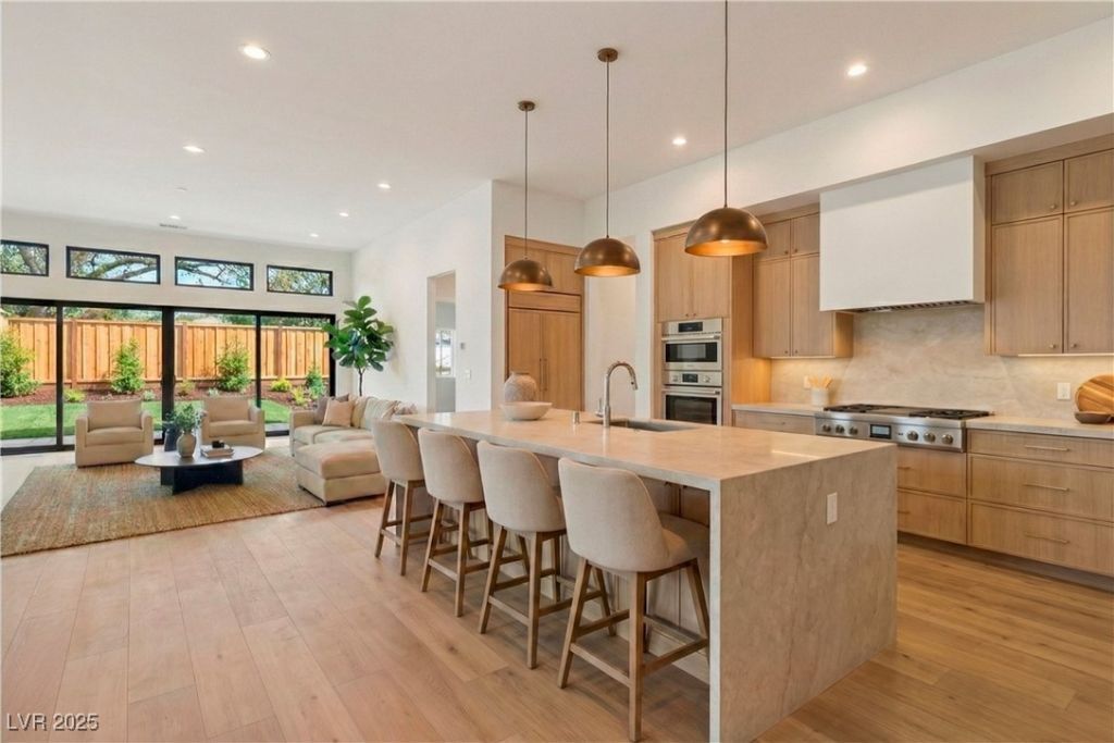 Discover unparalleled luxury in this stunning custom single-story estate located in the desirable SW of LV. Spanning over 5,000 sqft, the main residence offers an expansive open floor plan designed for effortless entertaining. Soaring ceilings & oversized sliders create a seamless in/outdoor flow, filling the home with natural light. The main home feats 4 spacious suites, including a lavish primary retreat complete with a serene sitting area & a spa-inspired bath designed for ultimate relaxation. The gourmet kitchen is a chef's dream, boasting a Viking SS appliance suite, custom cabinetry & an oversized island perfect for gatherings. A detached casita provides versatility, offering a full bed, living area & a convenient kitchenette. Car enthusiasts & hobbyists will be captivated by the massive 2,250 sqft RV garage, offering endless possibilities which the attached 3-car garage provides everyday convenience. Experience the best of Las Vegas living in this one-of-a-kind property.