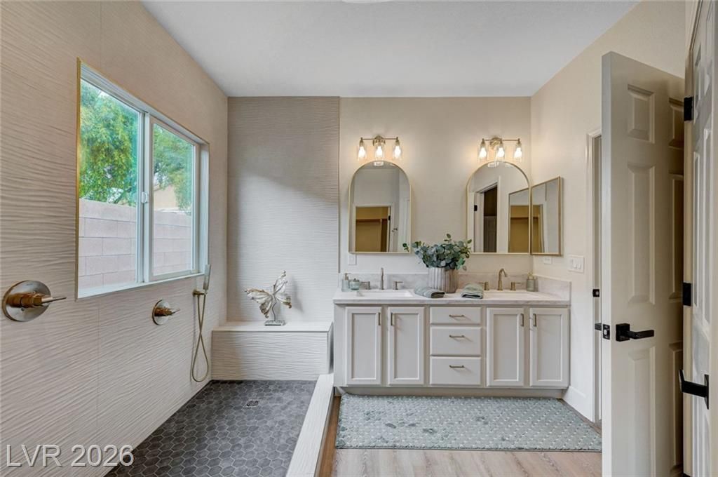 ABSOLUTELY HIGH END. STEP INTO THIS GORGEOUS SINGLE STORY IN THE POPULAR SILVERSTONE RANCH COMMUNITY. FROM THE MOMENT YOU STEP INSIDE THE WELCOME AND NEWLY PAINTED FOYER, YOU WILL SEE THAT THE SELLER SPARED NO EXPENSE WITH DESIGNER TOUCHES INCLUDING THE BRIGHT AND WARM KITCHEN. QUARTZ COUNTERTOPS, ELEGANT BACKSPLASH WITH CHAMPAGNE ACCENTS. NEW STOVE, DISHWASHER AND MICROWAVE! WASHER AND DRYER INCLUDED! SIT AT THE SPACIOUS BAR, OR GET THE EXPERIENCE OF HAVING YOUR OWN SPA IN THE BEAUTIFULLY APPOINTED BATHROOMS. LUXURY LAMINATE WOOD-LIKE FLOORING,COMPLETES THE DESIGN, AND THAT'S RIGHT, IT ALSO HAS A LARGE YARD WITH SHADY TREES AND WATER SAVING LANDSCAPE. YOU ARE GOING TO LOVE THIS HOME!