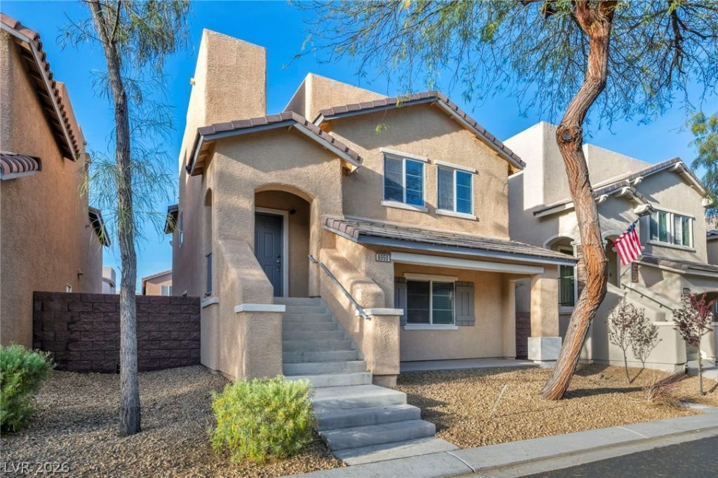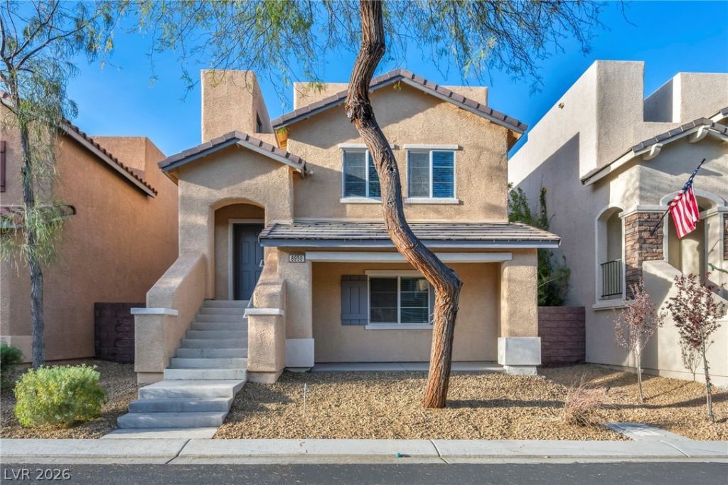 Come see this charming two-story home in the Maravilla at Mountain's Edge community featuring 3 bedrooms, 2.5 baths, and 2,158 square feet on an easy to manage 2,614 square foot lot. Spacious kitchen area with large island and plenty of cabinet space. Built in 2013, this home features an opportunistic rooftop deck that provides mountain and city views. Unique 2-car garage with rear facing entrance. Interior layout includes open living areas and defined dining space. Primary bedroom with en-suite bath. The front yard showcases with low-maintenance and water conserving desert landscaping. This home offers convenient access to several local parks, trails, retail centers, dining, and freeway connections, including Mountains Edge Regional Park and must see and climb Exploration Peak at Exploration Peak Park. Rooftop deck access offering scenic mountain and inviting city views. Professional photography, drone media, and 3D tour availability coming soon with this listing.