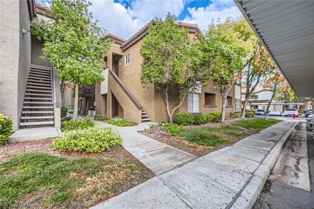 Welcome to this 1-bedroom, 1-bathroom condo located in Las Vegas. In a gated community, this home offers a secure and peaceful environment. As you step inside, you'll be greeted by vinyl flooring and ceiling fans throughout. The cozy fireplace in the living room creates a warm and inviting atmosphere. The kitchen boasts a convenient breakfast bar and pantry, providing ample storage space for all your culinary needs. Equipped with stainless steel appliances and quartz countertops, this kitchen is a chef's dream. The primary bedroom features a spacious walk-in closet, offering plenty of room for your wardrobe. The bathroom showcases a tile shower and tub combo, providing a luxurious bathing experience. For added convenience, a washer and dryer are included. Step outside onto the covered balcony and enjoy the fresh air and scenic views. With covered parking, your vehicle will be protected from the elements. Contact us today to schedule a tour and make this house your new home.