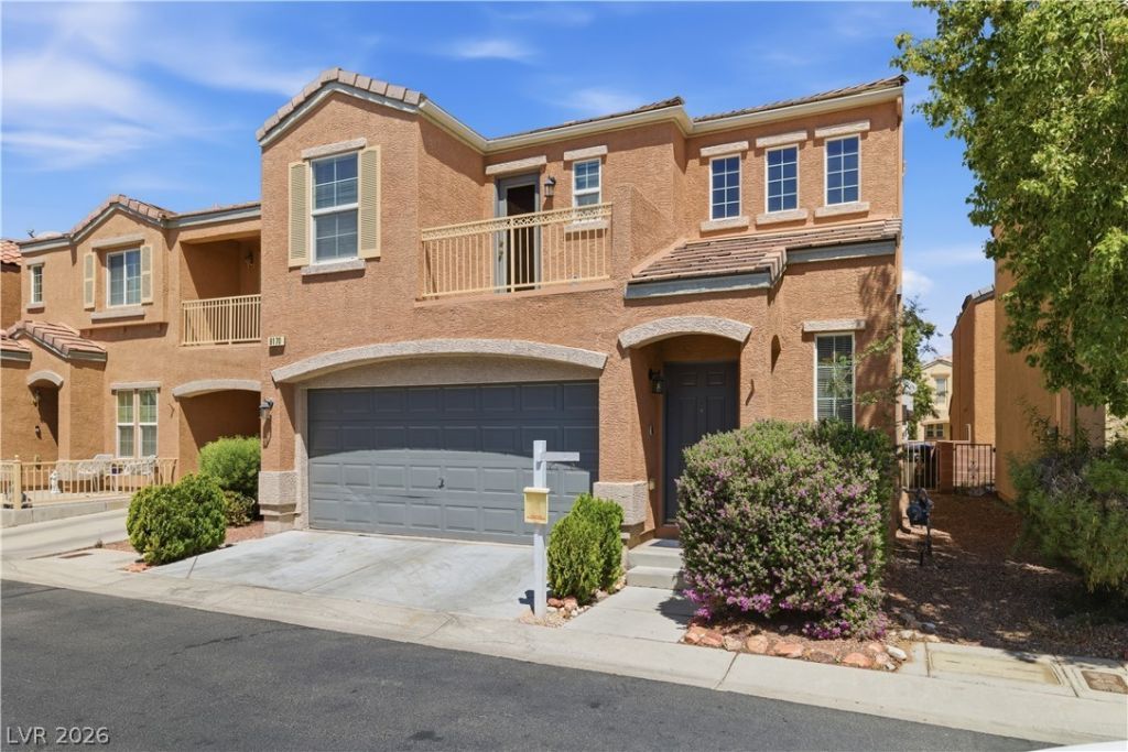 Don't miss this incredible opportunity in Southwest Las Vegas! This beautiful two-story home is perfectly located near everyday conveniences?shopping, grocery stores, restaurants, and entertainment?all just minutes away. Less than 1.5 miles from Durango Station and a short drive to Downtown Summerlin, Red Rock Canyon, and the Las Vegas Strip, you'll love the balance of comfort and accessibility. Inside, enjoy stainless steel appliances, full-size LG stacking washer and dryer, Tesla solar panels, and a 220V EV-ready garage. The spacious primary suite features a private balcony and walk-in closet?perfect for relaxing at the end of the day. With two community pools and a playground, this home is ideal for families looking for both value and lifestyle! Call today to schedule your private showing before this one is gone!