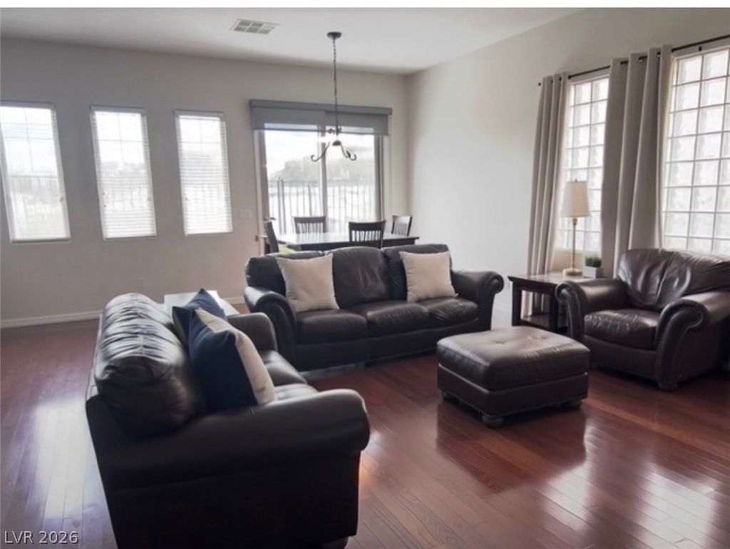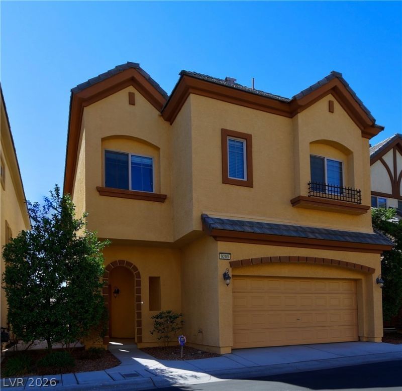 Nestled in the gated community of Tudor Park at Queensridge, this Pulte home offers a great location, community pool & nearby world class shopping and dining choices. Key features include hardwood flooring, 10 foot ceilings, granite countertops & stainless steel appliances in the kitchen. A large open concept living room area is highlighted by gas fireplace & connecting formal dining area. Massive primary suite offers a serene escape w/ large bathroom including soaking tub, oversized separate shower, dual vanities & large walk-in closet. Mini loft upstairs could be utilized as an office, play area/yoga retreat. Guest bedrooms located separately from primary~ each accessible to a full bath (Jack-n-Jill). Downstairs office & downstairs powder room. Home is turn key, fresh paint, move in ready and can convey furnished (If buyer requests). Fully fenced backyard & no neighbors behind the home maximize those awesome Red Rock Canyon Mountain Views.