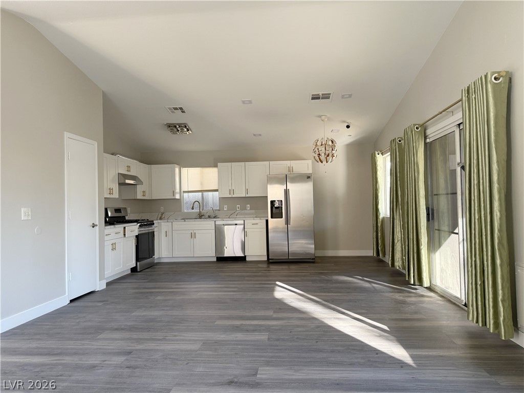 Well-maintained single-story home located in the desirable Silverado Ranch area. This property offers 3 bedrooms and 2 bathrooms with approximately 1,394 sq ft of comfortable living space on a generous lot. The open-concept layout features a spacious great room with wood-look laminate flooring, ceiling fans, and plenty of natural light. The kitchen includes a center island, ample cabinetry, and flows seamlessly into the main living area?ideal for everyday living and entertaining. Enjoy outdoor living in the large backyard with a covered patio, perfect for relaxing or hosting gatherings. Additional highlights include a two-car garage, tile roof, block fencing, and convenient access to shopping, dining, schools, parks, and major freeways.