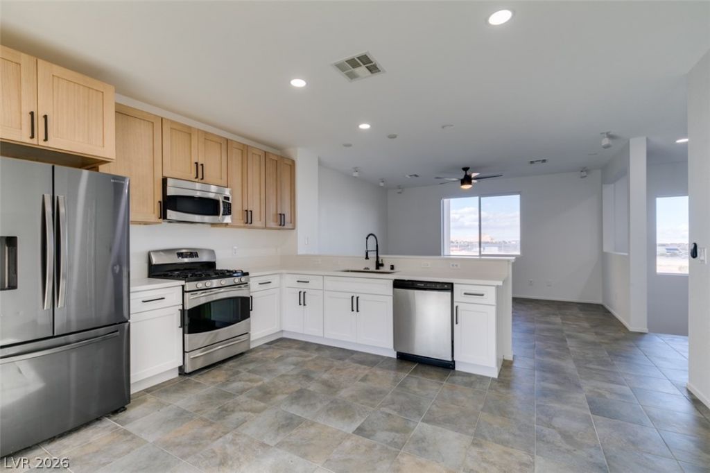 Step into this beautifully updated 3-story home, where modern comfort meets timeless style. The heart of the house features a sleek kitchen with stainless steel appliances, and durable tile flooring, all complemented by fresh paint throughout and brand-new shaker cabinets. Upstairs, the third-floor outdoor deck offers the perfect retreat to soak in sweeping mountain views?ideal for morning coffee or evening gatherings to enjoy views of the famous Las Vegas Strip. With thoughtful updates and inviting spaces, this home is ready to impress and inspire its next owner