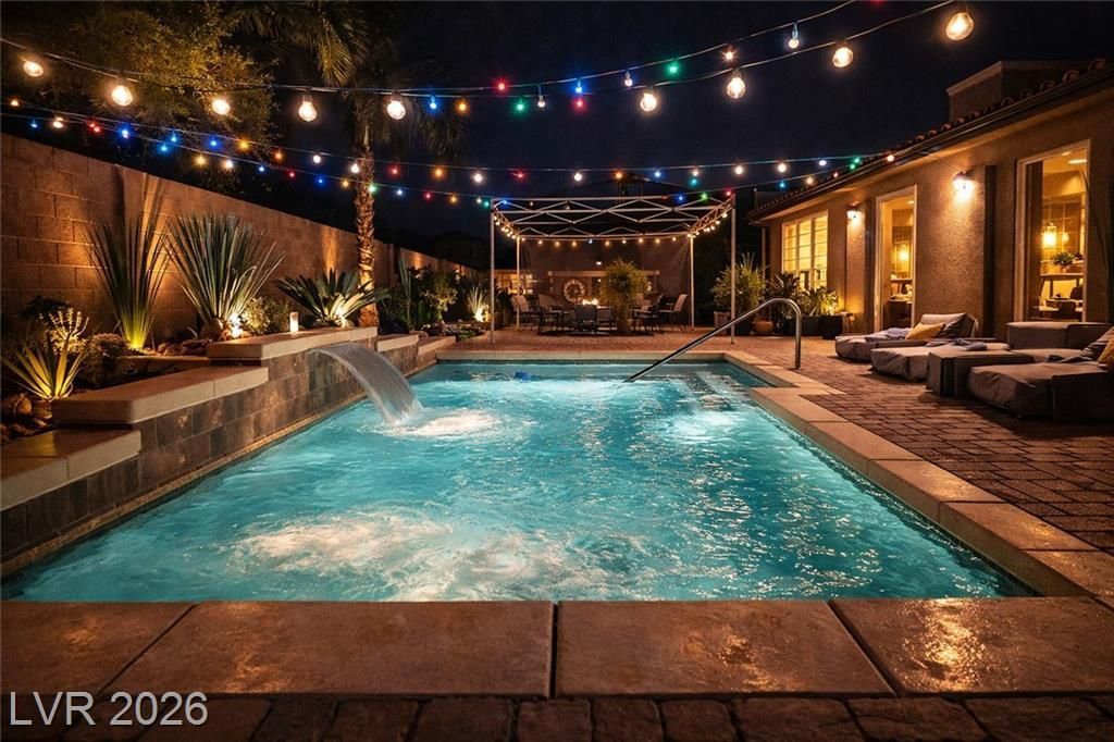 Rare 2-story home that lives like a single story with dual primary suites and a resort-style backyard with a heated pool. Situated on an interior lot backing to a cul-de-sac, this flexible floor plan offers a spacious main-level primary suite plus two additional bedrooms downstairs. Upstairs features a private second primary suite with its own bath and a large loft, ideal for guests or multi-generational living. Open-concept living with a chef's kitchen showcasing granite countertops, stainless steel appliances, gas cooktop, double ovens, walk-in pantry, and 42 cabinets. Step outside to an entertainer's backyard complete with a heated pool, waterfall, extended covered patio with solar shades, and beautiful landscaping. Refrigerator, washer, dryer, and pool table included. Tandem 3-car finished garage offers plenty of storage.