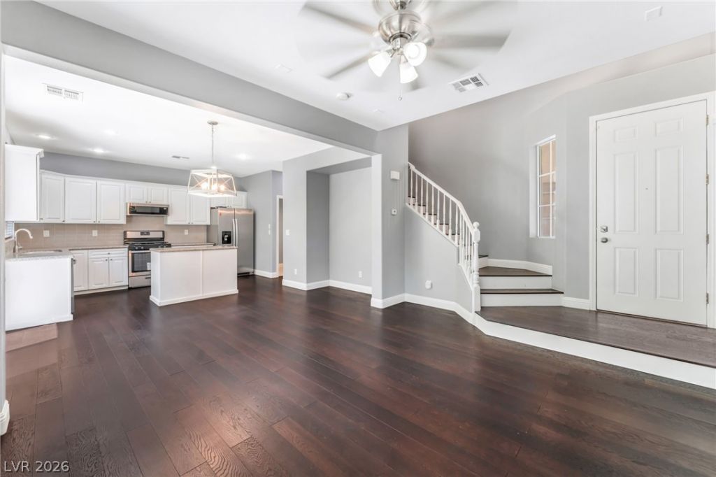 This well-maintained Southwest Las Vegas home offers a thoughtfully designed layout with inviting living spaces and a comfortable flow ideal for everyday living. The interior features a bright and open main living area that connects seamlessly to a functional kitchen with ample cabinetry and workspace, while upstairs provides a private retreat with well-proportioned bedrooms and a spacious primary suite. The backyard is designed for easy upkeep, creating a practical outdoor space to relax or entertain without heavy maintenance. Situated in an established residential neighborhood with convenient access to shopping, dining, and major roadways, this home delivers a balanced combination of comfort, efficiency, and location.