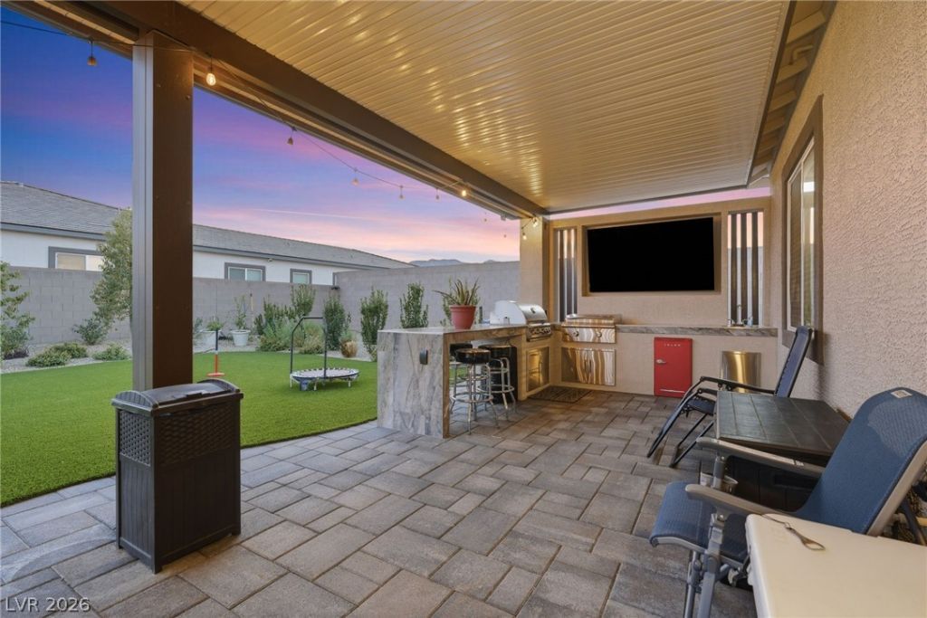 This exceptional, fully furnished, Lennar Next Gen® home redefines modern living offering a private Next Gen suite with two bedrooms, ideal for multigenerational living or a work-from-home retreat. A bright, open floor plan with recessed lighting creates a warm, elevated ambiance. The chef's kitchen is nothing short of a statement piece, showcasing upgraded brown slate cabinetry, stunning Calacatta Lasa quartz countertops & a dramatic waterfall edge that anchors the space in sophistication. The primary suite is a private sanctuary, complete with a custom walk-in closet tailored for both style & organization. The backyard is an entertainer's dream on a grand scale. Designed for unforgettable evenings featuring a firepit, covered patio & fully equipped built-in BBQ with bar seating. The RV garage delivers in a big way offering room for your toys & passions. A rare opportunity to own a home that delivers space, style, and a lifestyle to match.