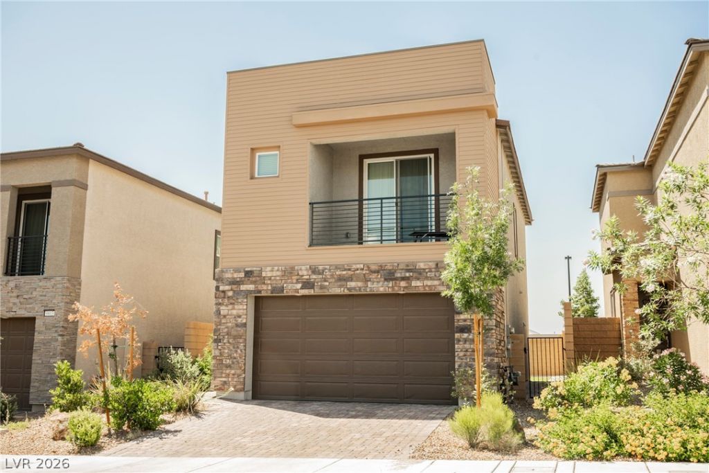 WELCOME TO YOUR NEW HOME!!! Assume at 3.99% if you are qualified for a VA loan! The downstairs is inviting, open, and comfortable. The outstanding kitchen of your dreams features quartz counters, island and breakfast bar, plenty of storage, and SS Appliances. Spacious primary bedroom upstairs has a private balcony and a large walk-in closet. 2 more bedrooms each with it's own walk-in closet! No neighbors behind for added privacy. Solar system includes 2 tesla battery walls! And what a location for those seeking a blend of natural beauty, modern amenities, outdoor recreation and a quieter lifestyle while still having access to the excitement of the Las Vegas Strip!