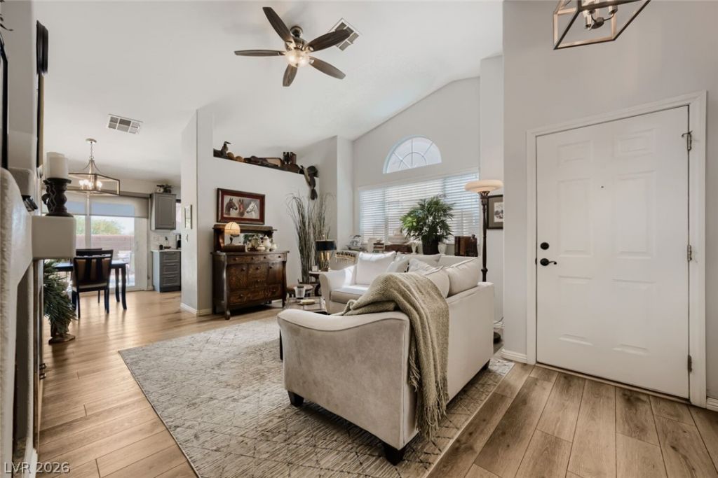NESTLED IN THE HEART OF SUMMERLIN, THIS CHARMING THREE-BEDROOM, TWO-BATHROOM HOME OFFERS AN INVITING BLEND OF COMFORT AND STYLE. THE INTERIOR IS DEFINED BY SOARING VAULTED CEILINGS THAT CREATE AN AIRY, EXPANSIVE FEEL, CENTERED AROUND A COZY GAS FIREPLACE PERFECT FOR RELAXING EVENINGS. THE FUNCTIONAL LAYOUT INCLUDES A SPACIOUS TWO-CAR GARAGE AND FLOWS SEAMLESSLY TO A GENEROUSLY SIZED BACKYARD, PROVIDING A PRIVATE OUTDOOR OASIS RARELY FOUND IN THE AREA. WHETHER YOU ARE LOOKING FOR A SERENE RETREAT OR A SPACE TO ENTERTAIN, THIS PROPERTY DELIVERS THE IDEAL DESERT LIFESTYLE IN A PREMIER LOCATION.