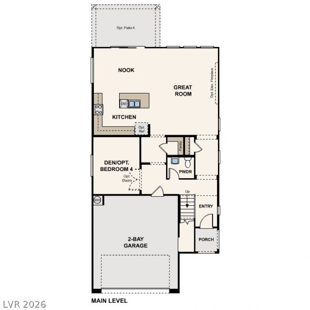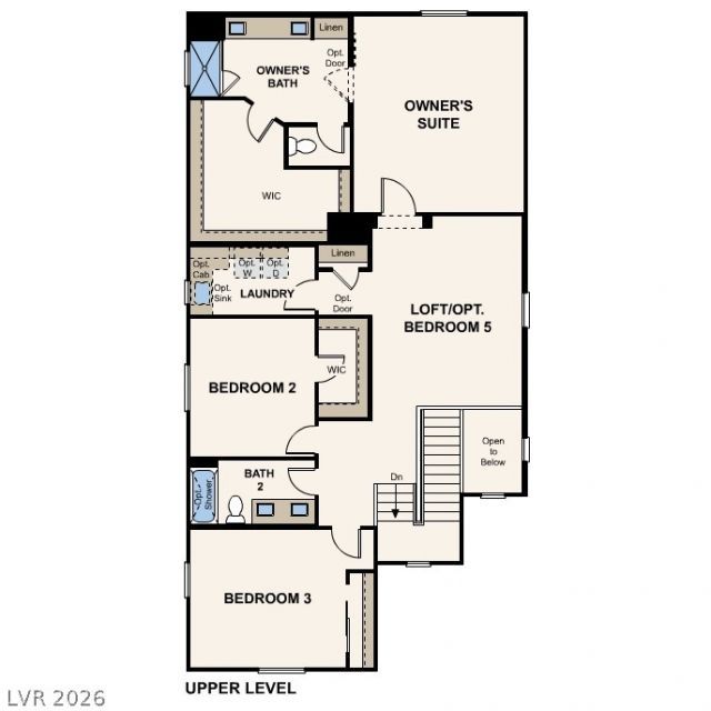 Discover your dream home at Southwind! The main floor of the attractive 2605 plan offers a modern layout, showcasing an open great room, a dining nook, a well-equipped kitchen, a center island, and a walk-in pantry. You'll also find a cozy fourth bedroom to use as guest room or office. There are three spacious bedrooms upstairs, as well as a shared bath. The luxurious owner's suite offers an oversized walk-in closet, and an attached bath with a walk-in shower and dual vanities. A 2-bay garage also included. Additional home highlights include Bedroom 4 with Bath 3 in lieu of the den and powder bath, Bedroom 5 in lieu of the loft, dual sinks at Bath 2, and upgraded electrical options.